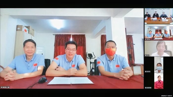 新春佳节来临之际,2月11日下午,附属武鸣医院在1号楼21楼1号会议室召开2026年援非医疗队和驻港人员新春慰问视频座谈会。医院党委书记朱小东,院长张剑锋,党委副书记、纪委书记潘文海,副书记段敏超,副院长陈茂伟,总会计师黄立斌及相关职能科室负责人参加活动。座谈会由张剑锋主持。