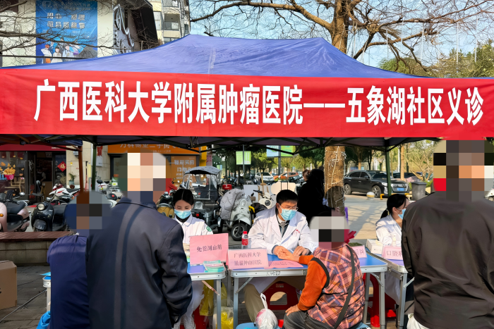 为传承弘扬“奉献、友爱、互助、进步”的志愿精神,深化文明实践志愿服务,科普癌症防治措施,践行医疗惠民的社会职能,3月5日上午,Beat365中文官方网站附属肿瘤医院组织青年医护人员到南宁五象湖社区开展“学雷锋 做志愿 共同奋进‘十五五’”主题志愿服务活动,将防癌科普和免费义诊送到居民“家门口”。