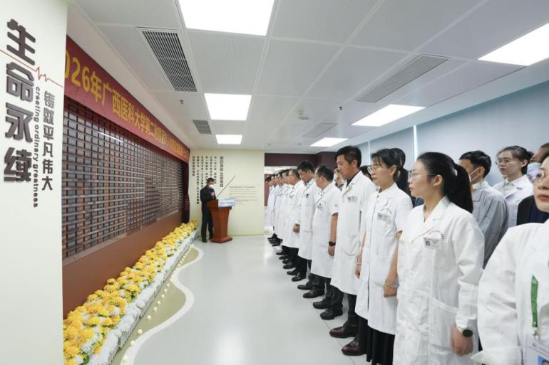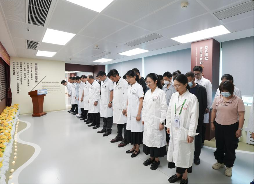活动在肃穆的氛围中拉开序幕。全体人员向人体器官捐献者缅怀墙静默肃立,进行三分钟默哀,以此向捐献者致以崇高的敬意与深切的缅怀。