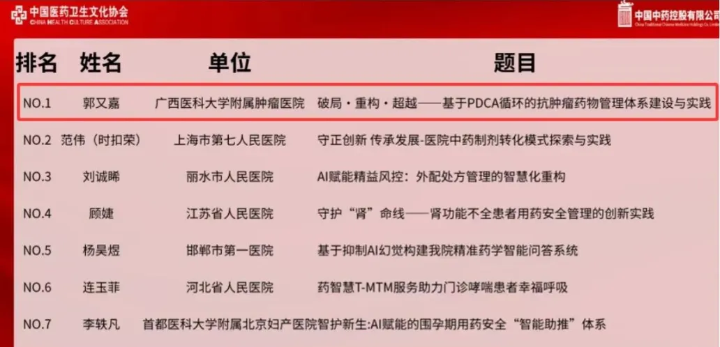 此次夺冠是对医院药事管理创新能力的充分肯定。未来,医院将以此为契机,推进数字化全病程管理模式升级,借助智能化手段实现远程监测与精准干预,持续深化药学服务内涵,为肿瘤患者用药安全保驾护航。