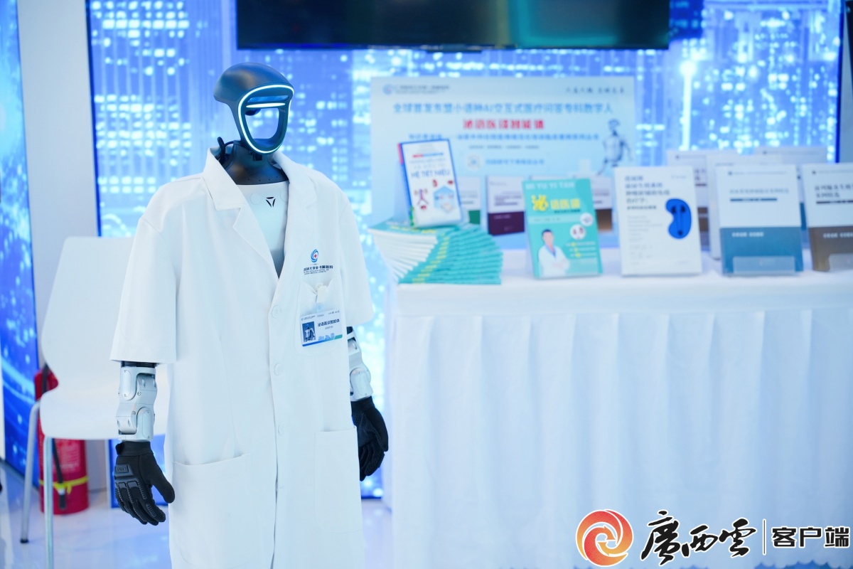 一位身高1.27米、身披白大褂的“医生”正在接诊。当越南客商用母语描述腰部不适后,不一会,清晰的越南语答复便从“医生”处传来,分析了可能的原因并建议了检查方向。