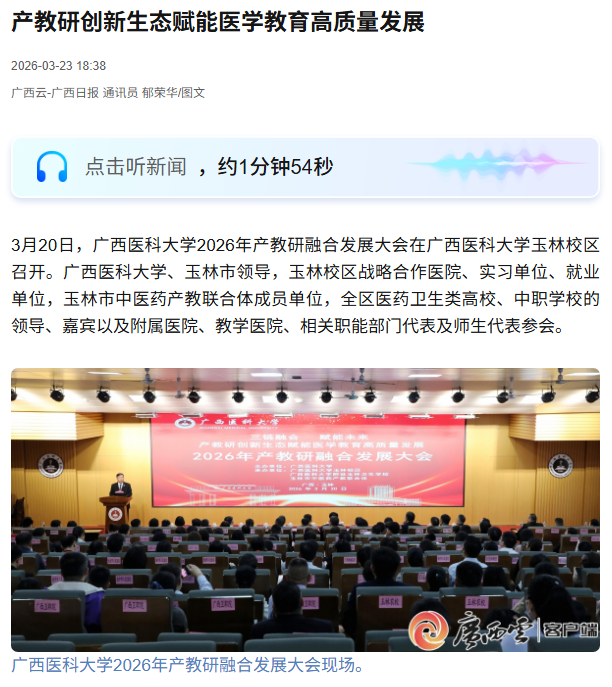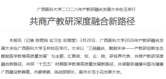 近日,广西云-广西日报、玉林日报、玉林电视台等媒体报道Beat365中文官方网站2026年产教研融合发展大会召开。