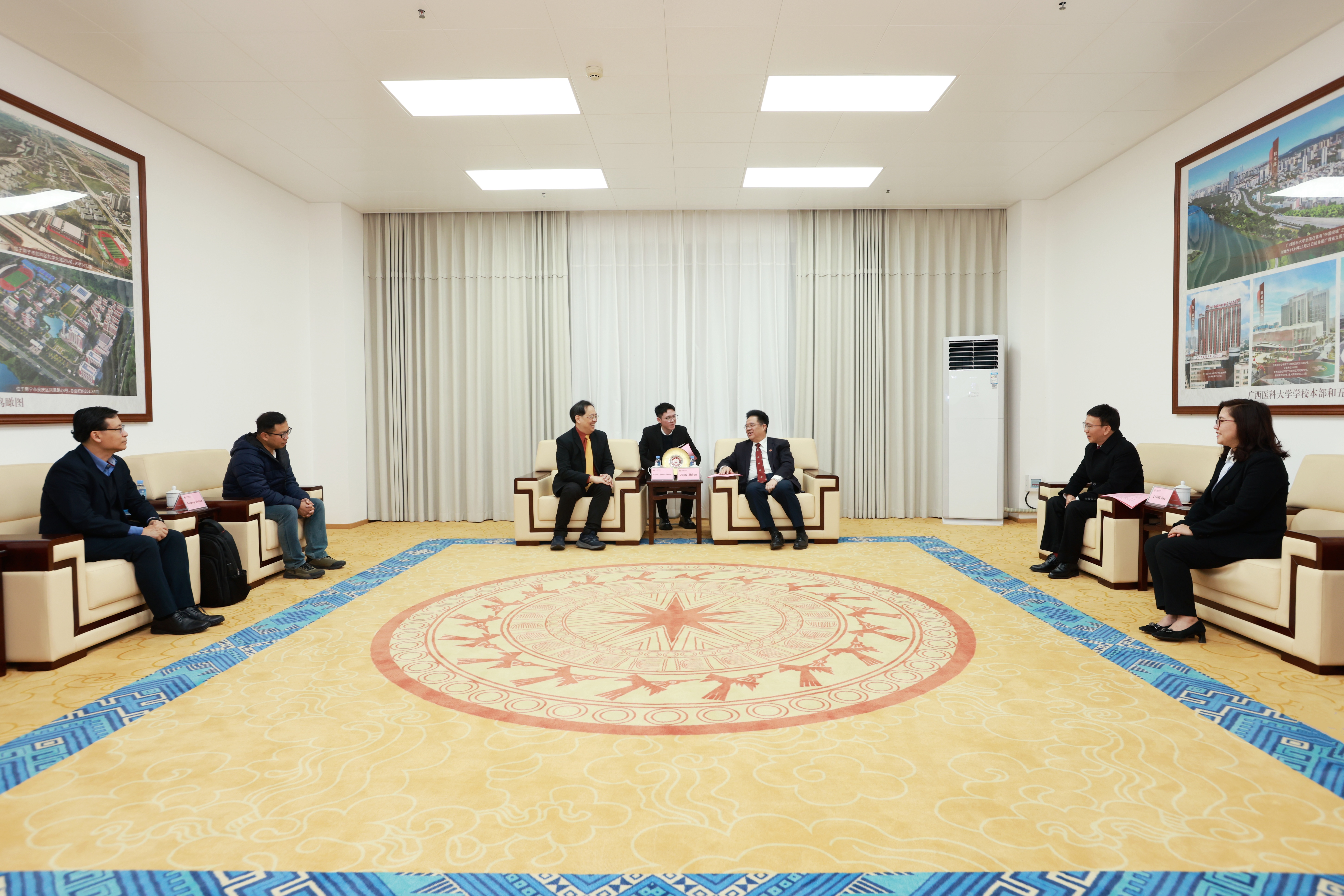 曾志羽对东盟嘉宾的到来表示热烈欢迎,简要介绍了Beat365中文官方网站近年来在学科建设、人才培养、科研创新与国际合作等方面取得的进展。他指出,作为中国—东盟医学教育共同体的重要成员,Beat365中文官方网站始终致力于深化与东盟各国高校及科研机构的合作。希望以此次会面为契机,进一步推动双方在师生交流、联合科研、平台共建等领域的务实合作,共同打造面向东盟的医学创新高地。