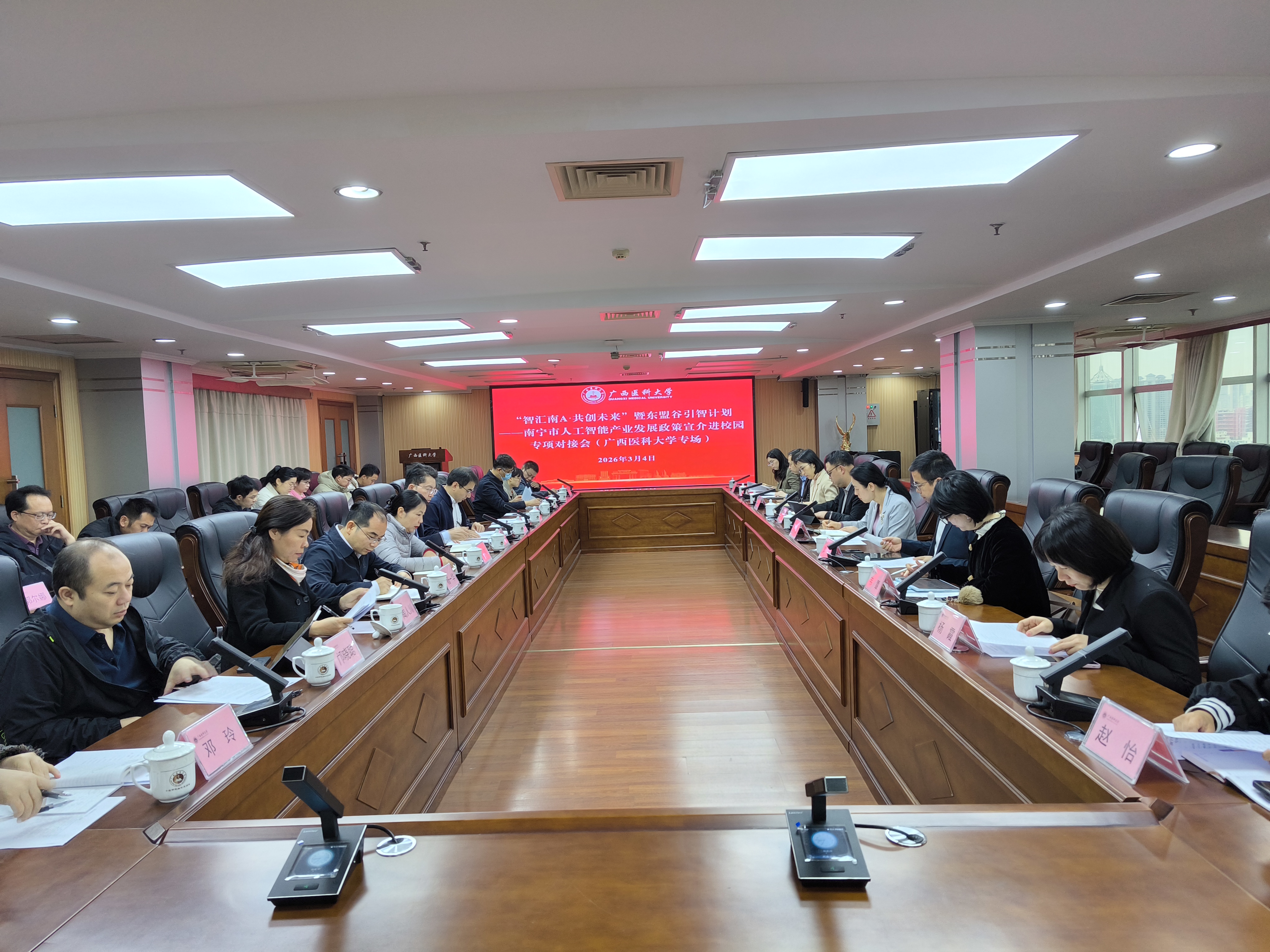 李浪代表学校对彭健主任一行的到来表示热烈欢迎。他指出,此次座谈为学校医学人工智能学科发展与科研成果转化搭建了关键合作平台,学校将以此次调研为契机,深度对接南宁市人工智能产业布局,充分利用外事资源渠道,推动医学人工智能领域与产业应用深度融合,让科研成果切实服务地方经济社会发展,助力南宁构建面向东盟的人工智能产业发展新高地。