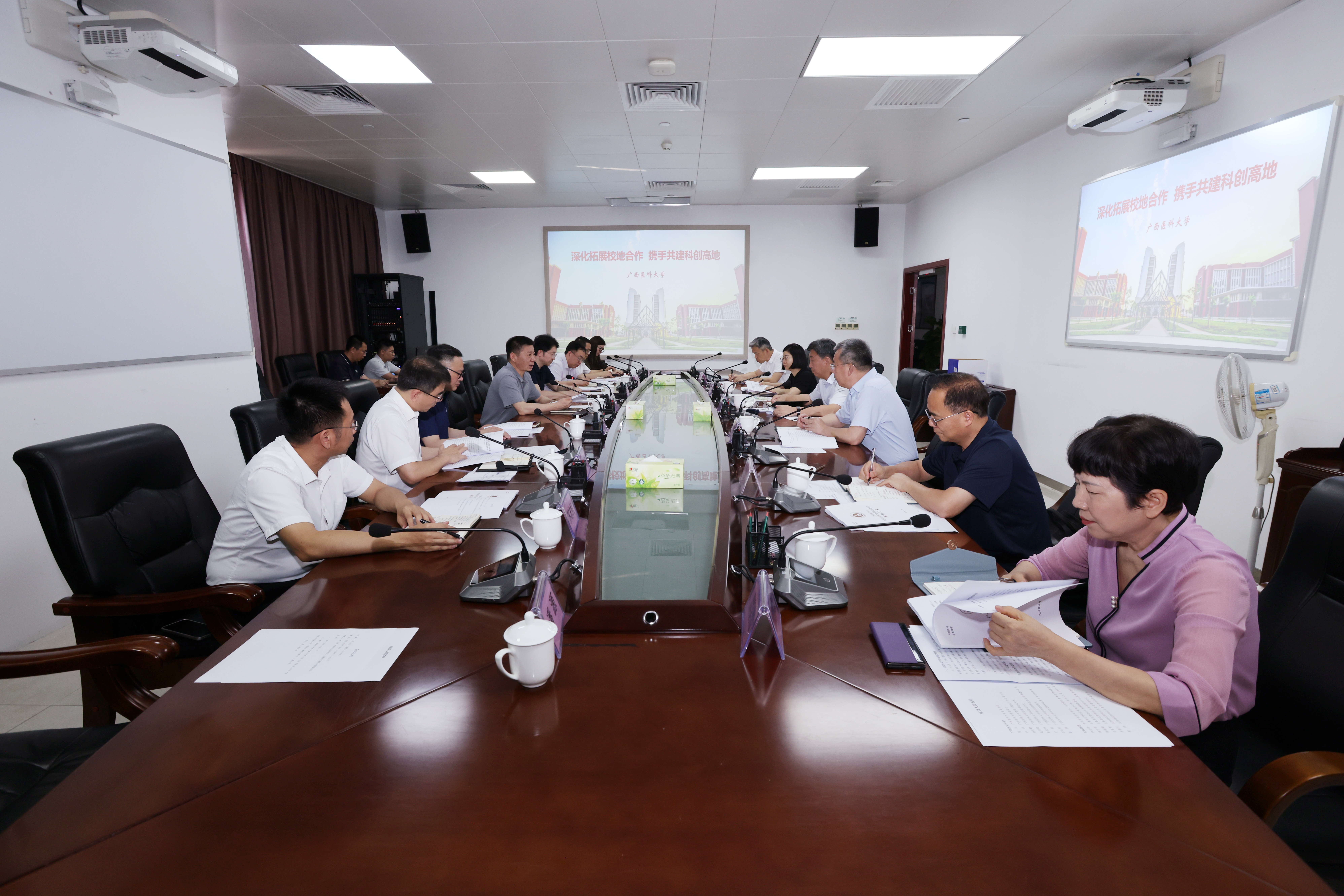 座谈中,五象新区管委会各相关部门负责人积极回应学校诉求,双方就规划衔接、企业对接、审批服务等具体事项达成初步共识。双方一致表示,将以此次调研为新起点,抢抓发展机遇、强化协同联动,全力推动合作事项落地见效,共同谱写校地深度融合、互利共赢的崭新篇章。