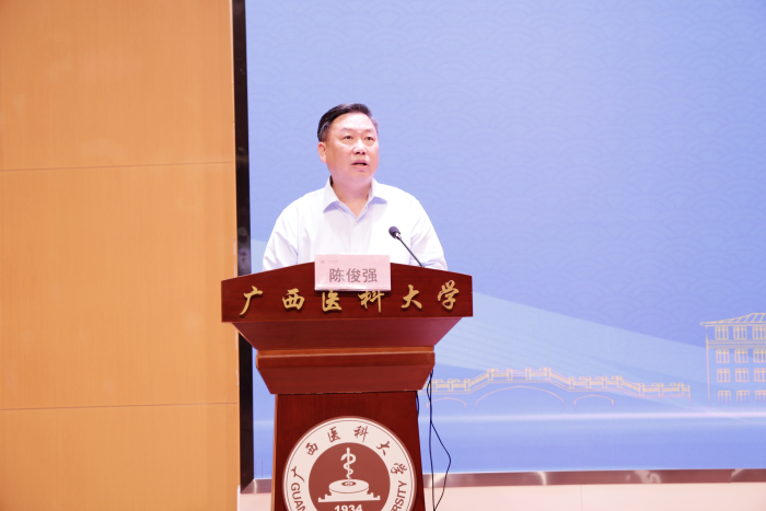 4月12日,大学生科创日活动启动仪式暨2026年“挑战杯”中国大学生创业计划竞赛培训会在武鸣校区举办。学校副校长陈俊强出席并讲话,相关职能部门负责人、各二级学院分管领导、学院团委书记、“挑战杯”参赛项目师生代表参加会议。校本部、玉林校区设分会场同步直播。
