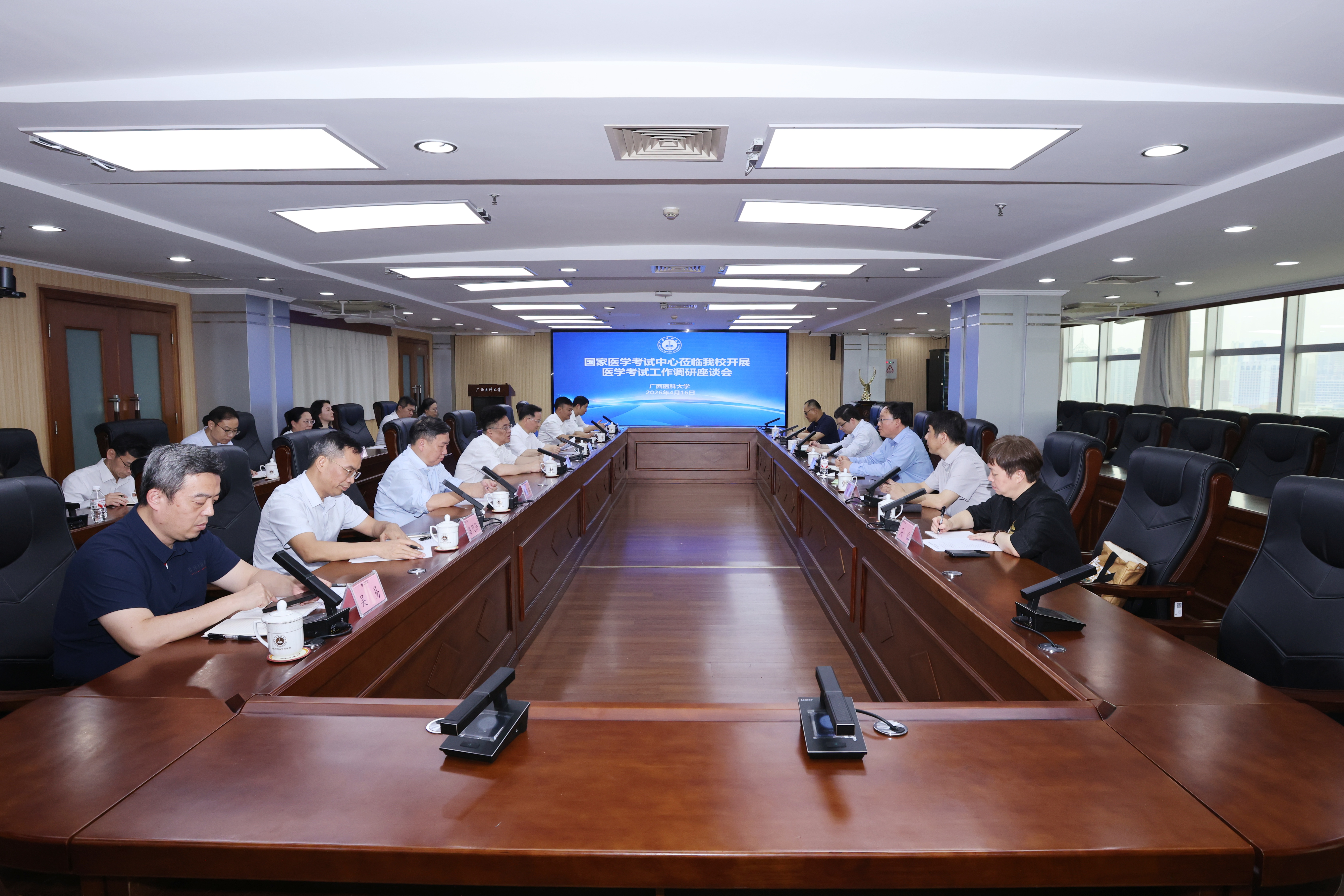 自治区医学考试中心主任吴容、副主任闭闵,学校教务处、研究生院,以及第一临床医学院、第二临床医学院、肿瘤医学院、口腔医学院、全科医学院、武鸣临床医学院相关负责人参加活动。