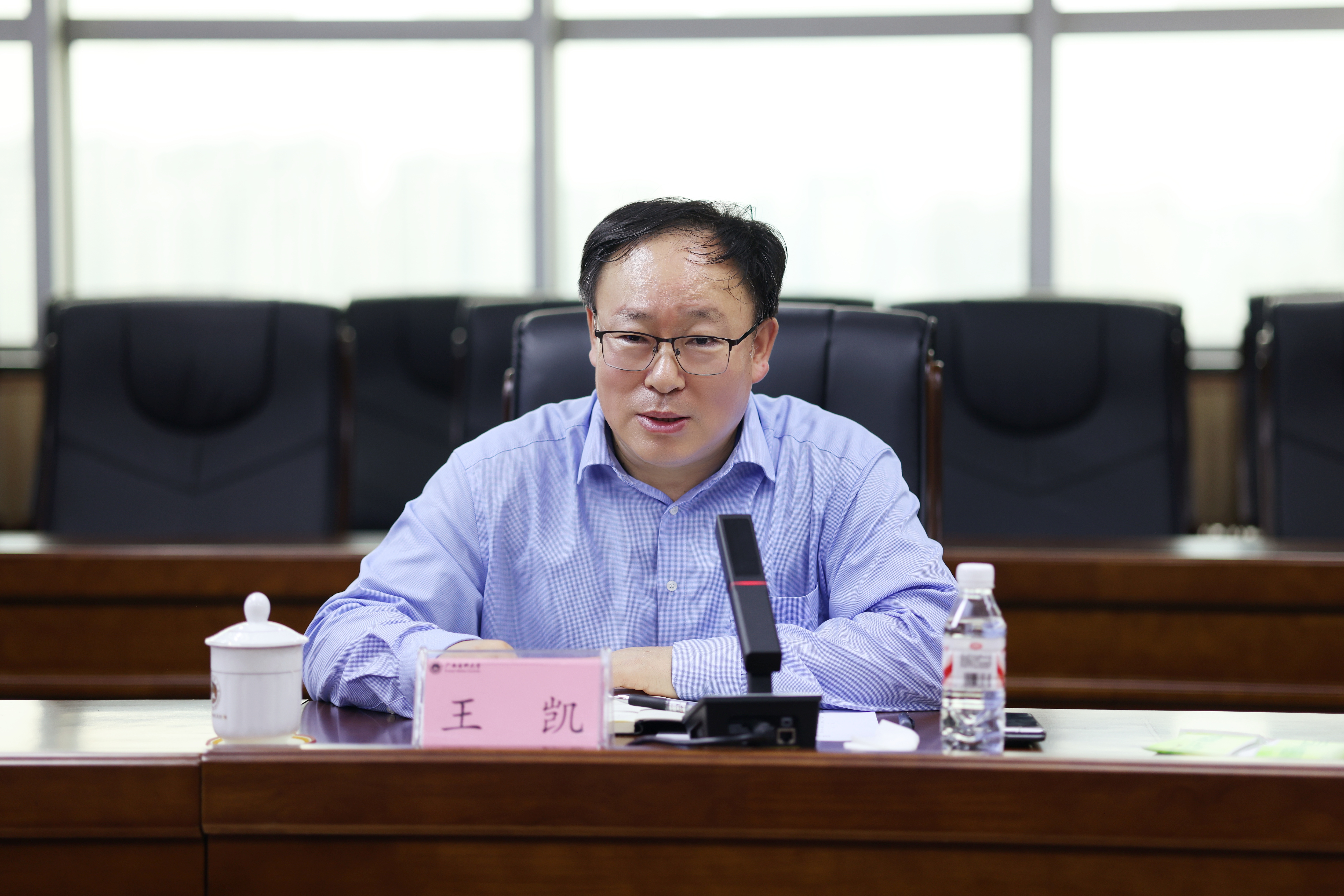 座谈会上,曾志羽代表学校对王凯一行的到来表示热烈欢迎,对国家医学考试中心长期以来给予学校的关心与指导表示衷心感谢。他指出,学校始终高度重视医学考试工作,严格落实国家医学考试各项工作要求,将考试标准与人才培养深度融合,全力保障临床医学专业水平测试、医师资格考试等各类考试公平公正、安全有序开展。他表示,学校将以此次调研为重要契机,进一步深化医学教育教学改革,完善医学人才评价体系,提升人才培养质量,助力健康中国、健康广西建设迈向新台阶。