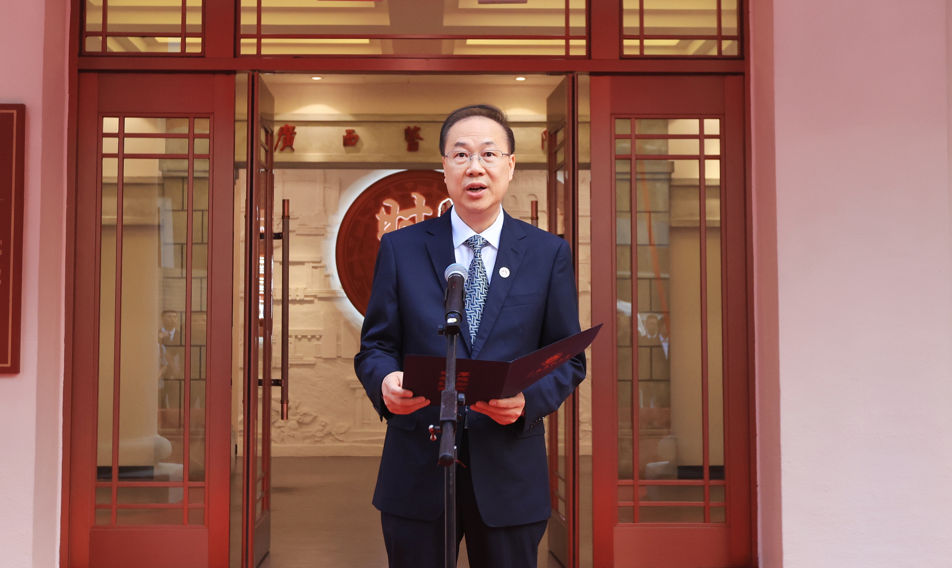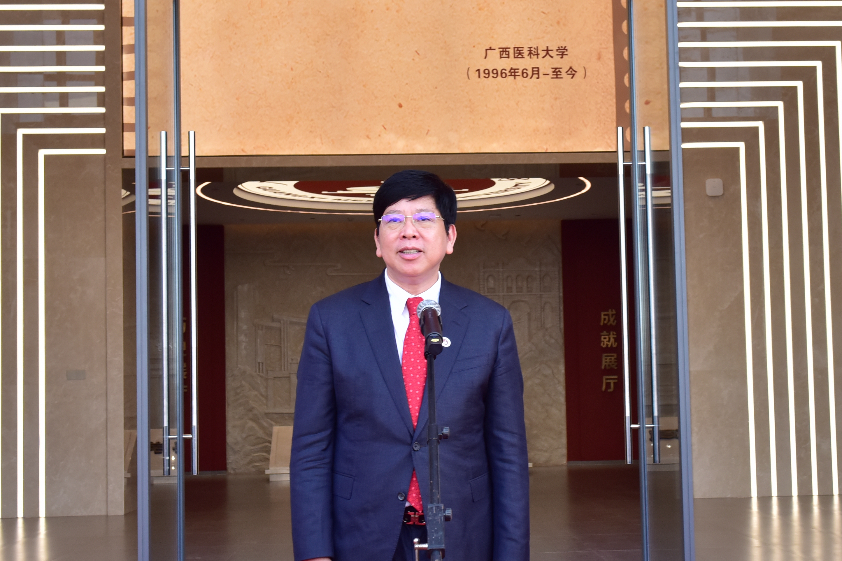 早上8:00,Beat365中文官方网站时光记忆馆开馆仪式在南宁-校本部弘医路举行。学校党委书记黄照权、校长曾志羽、副校长陈兴才出席仪式。仪式由学校党委副书记刘灵光主持。来自学校相关职能部门、二级学院,承建单位代表,离退休职工代表、师生代表约70人齐聚时光记忆馆大门前,一起等候开馆时刻。