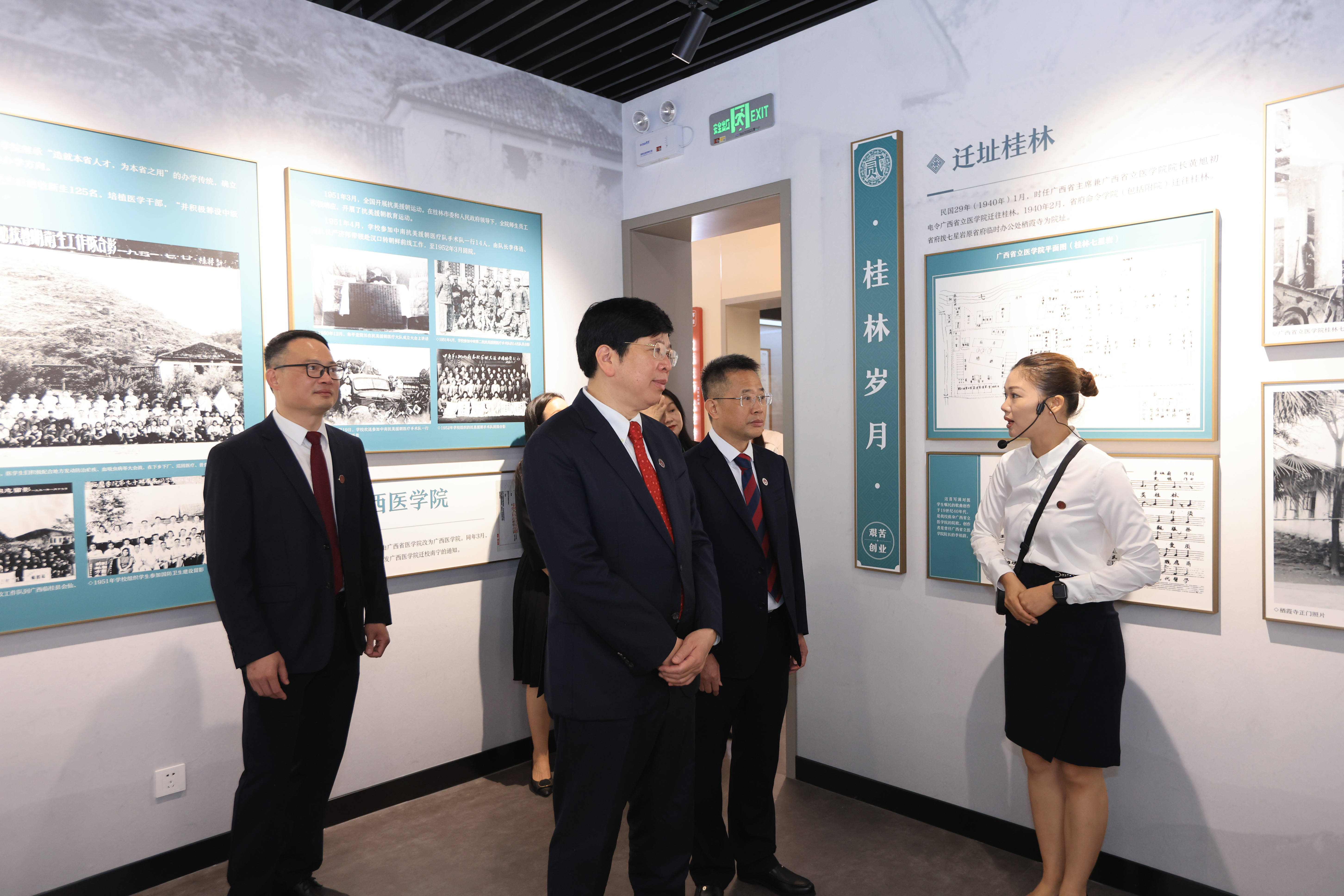 据悉,时光记忆馆选址学校现存历史中最为悠久的建筑之一——原后勤办公楼;校史馆选址武鸣校区图书馆,分为序厅、历史展和成就展三个功能性展厅,占地面积1896平方米。两个场馆通过图文、多媒体展示,实物展览、场景还原等多种方式,呈现了学校从建校至今各个时期的精神面貌和重大成就。两个场馆的正式开馆,为学校增添了两处难能可贵的文化载体和教育阵地,更为每一位医大人提供了一处回望过去、展望未来的精神栖居家园。