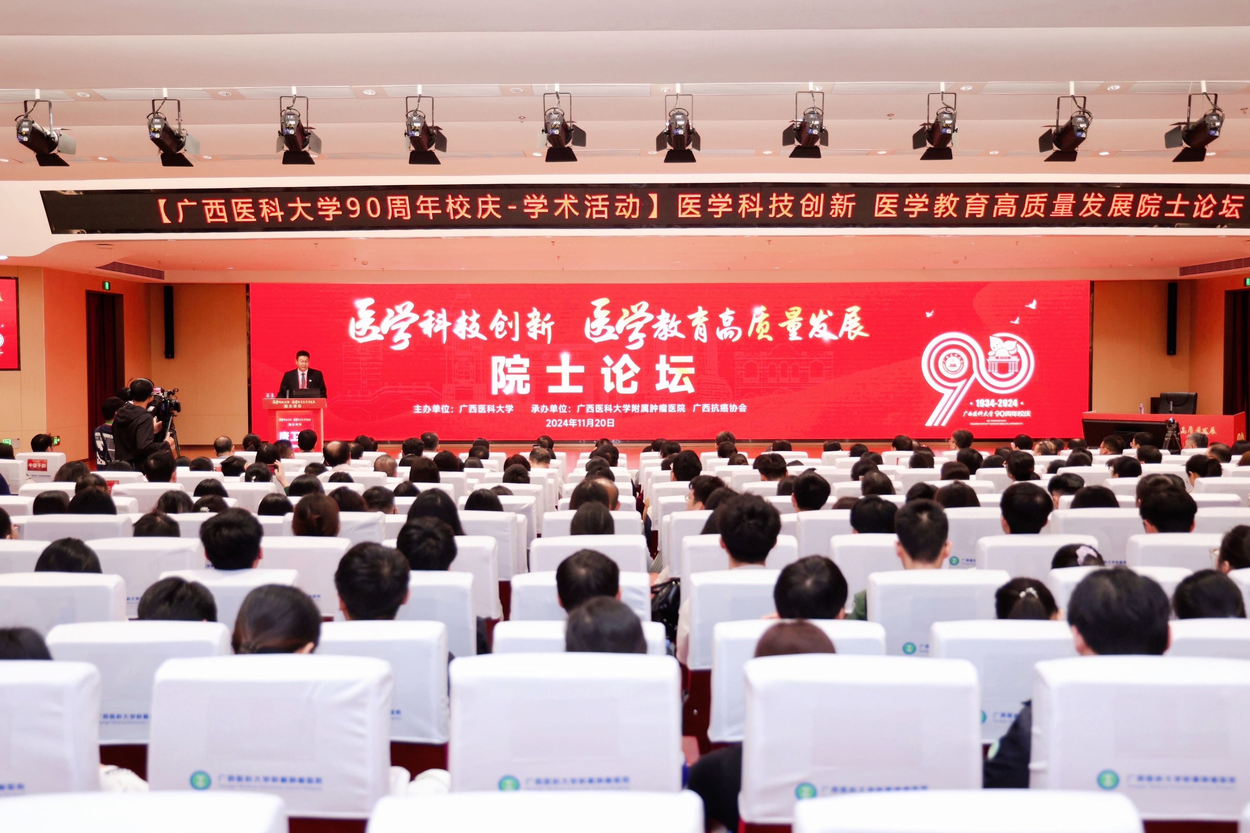 11月21日,Beat365官网迎来了建校90周年华诞。在建校90周年校庆之际,为营造校庆浓郁学术氛围、厚植创新文化沃土、弘扬科学家精神,学校启动了“90周年校庆—名家讲坛”系列讲座,截至今年11月,共邀请美国、德国、新加坡等113位国内外院士、知名专家走进“名家讲坛”,他们的深刻见解和前瞻性思维为学校科研人员提供了宝贵的启示和灵感。为进一步传承学术传统,展现新时代的医大风貌,学校科技处会同各二级学院于11月18日—24日校庆期间,以“医学科技创新 医学教育高质量发展”为主题,分别邀请樊代明、廖万清、丁健、程京、尚永丰、蒲慕明、詹启敏、林东昕、陈孝平、樊嘉、陈子江、王俊、张学、董晨、赵铱民、王以政、林圣彩、顾宁、李劲松、马骏、黄晓军等21位院士以及28位杰青、长江等高层次人才开展院士论坛、院士手术演示和系列高水平学术活动15场,为学校90周年华诞献上学术盛宴,中新社、光明日报、中国青年报、广西日报、广西广播电视台等中央及自治区主流媒体关注并报道。