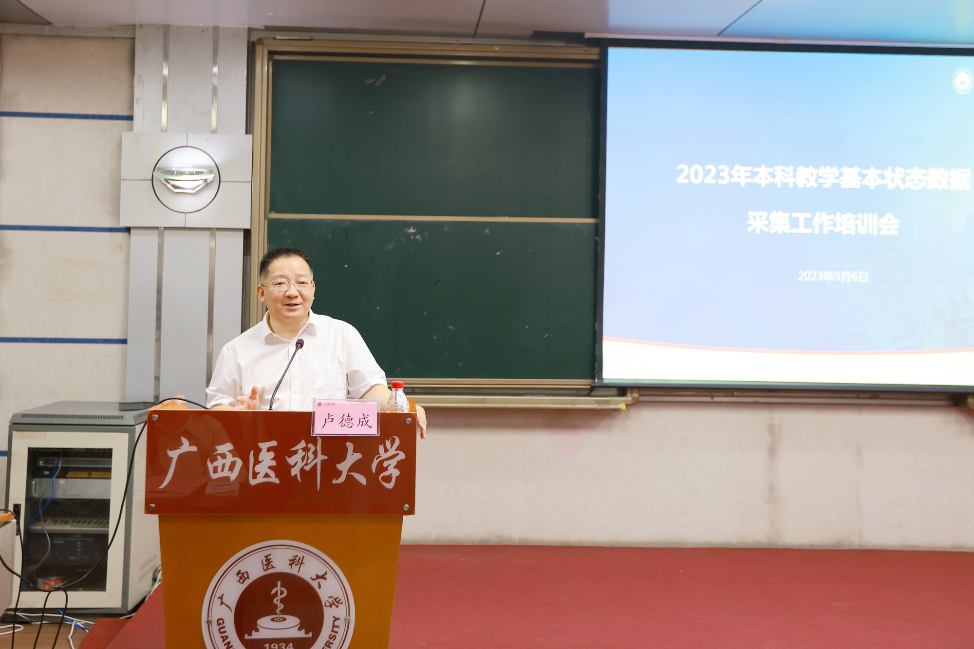 9月6日,Beat365官网在校本部综合楼1楼报告厅召开2023年本科教学基本状态数据采集工作培训会。学校党委常委、副校长卢德成,数据采集牵头及协助单位主要负责人、各学院分管教学副院长、各单位数据采集员等90余人参加会议。会议由教务处处长刘登宇主持。