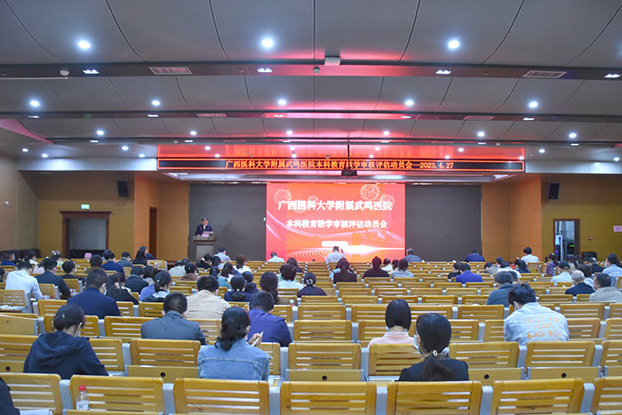 为做好新一轮本科教育教学审核评估工作,4月27日下午,附属武鸣医院在1号楼21楼学术厅召开本科教育教学审核评估动员会。全体院领导、中层干部、第二届教学督导组专家、全体教研室、科室主任及副主任、教学秘书、教师代表及学生代表参加了会议。会议由陈茂伟副院长主持。