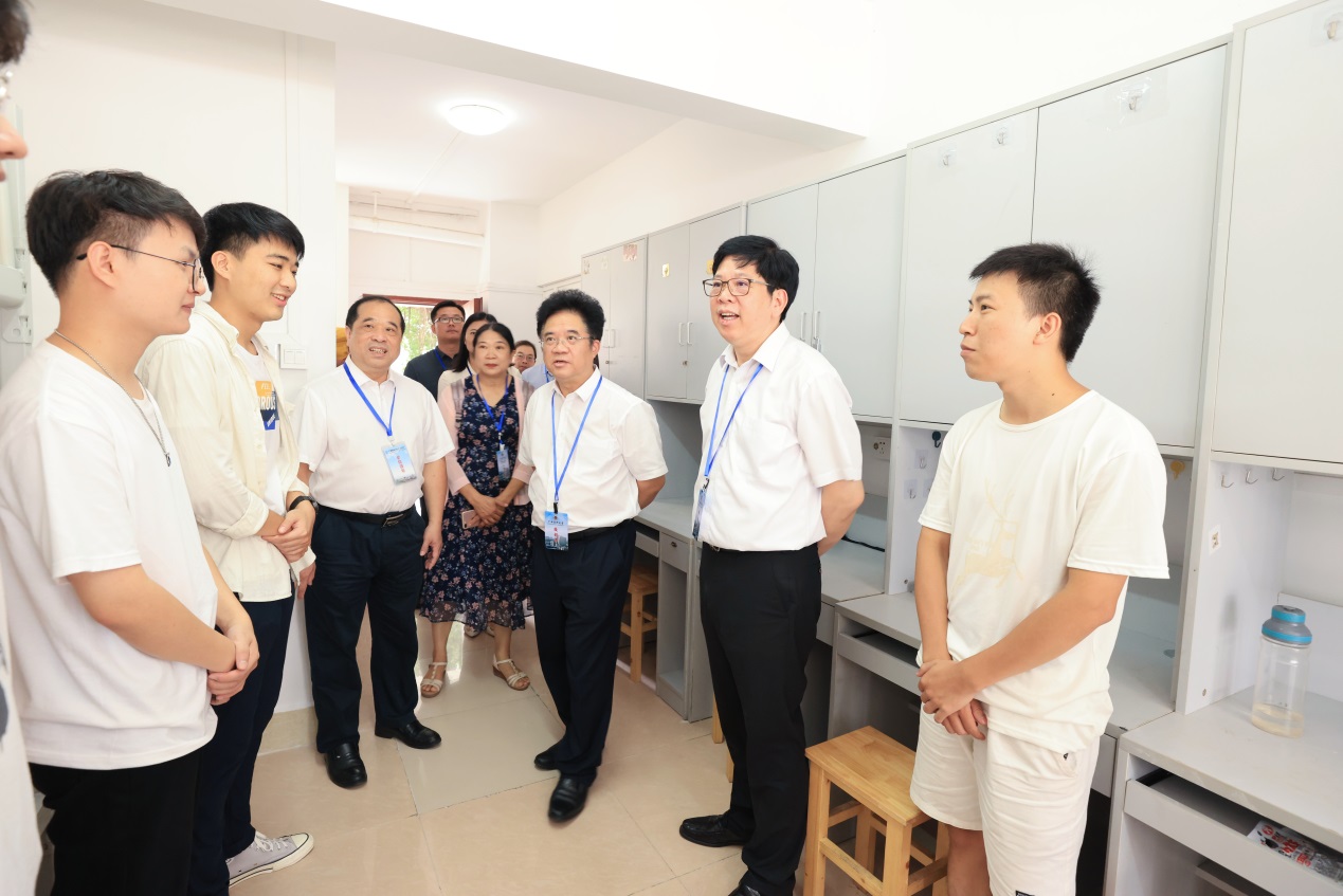 当天上午,学校党委书记黄照权、校长曾志羽,学校党委常委、副校长卢德成一行看望报到新生,了解迎新工作开展情况,亲切慰问迎新工作的一线师生志愿者们。校领导一行先后来到新生报到点、学校正门、学生宿舍,实地了解迎新工作的具体安排,对报到环节出现的难点进行指示。每到一处,校领导都与新生们亲切交流,祝贺同学们在医大开启新旅程,鼓励大家努力提升自己的学术能力,为成长成才打下坚实基础。校领导向在场工作人员与志愿者们表示慰问,对大家热情的工作进行了肯定与赞扬,要求大家充满热情,提供细致的服务帮助新同学们尽快融入新的学校生活中。
