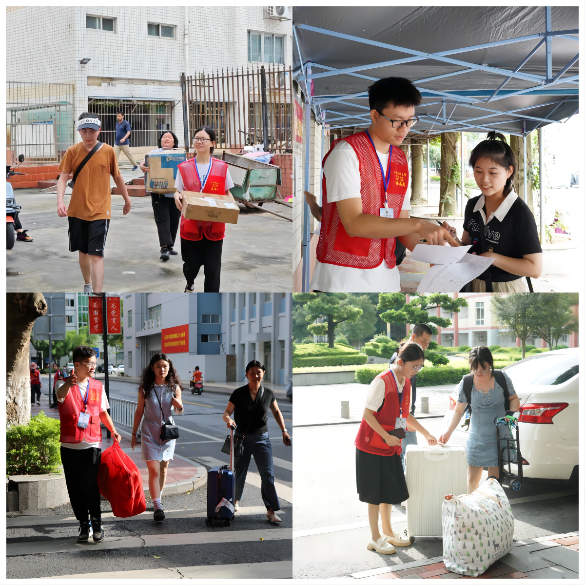 为确保新生报到有序、高效、便利进行,研究生工作部、研究生院统筹学校各相关部门,了解新生需求,针对各类情况做好解决预案,为新生迎接工作做好万全准备。研究生会的志愿者们提前规划好新生入校报到路线,布置引导标识,挂起横幅,建立咨询处,搭起“绿色通道”,准备好相关物资,细心布置迎新工作现场。研工部、各培养单位老师们、志愿者们全体出动,热忱细致地为新生们介绍校园、引导报到、搬运行李,往返于接待处、宿舍与报到处,无惧风雨、全力做好报到服务工作。