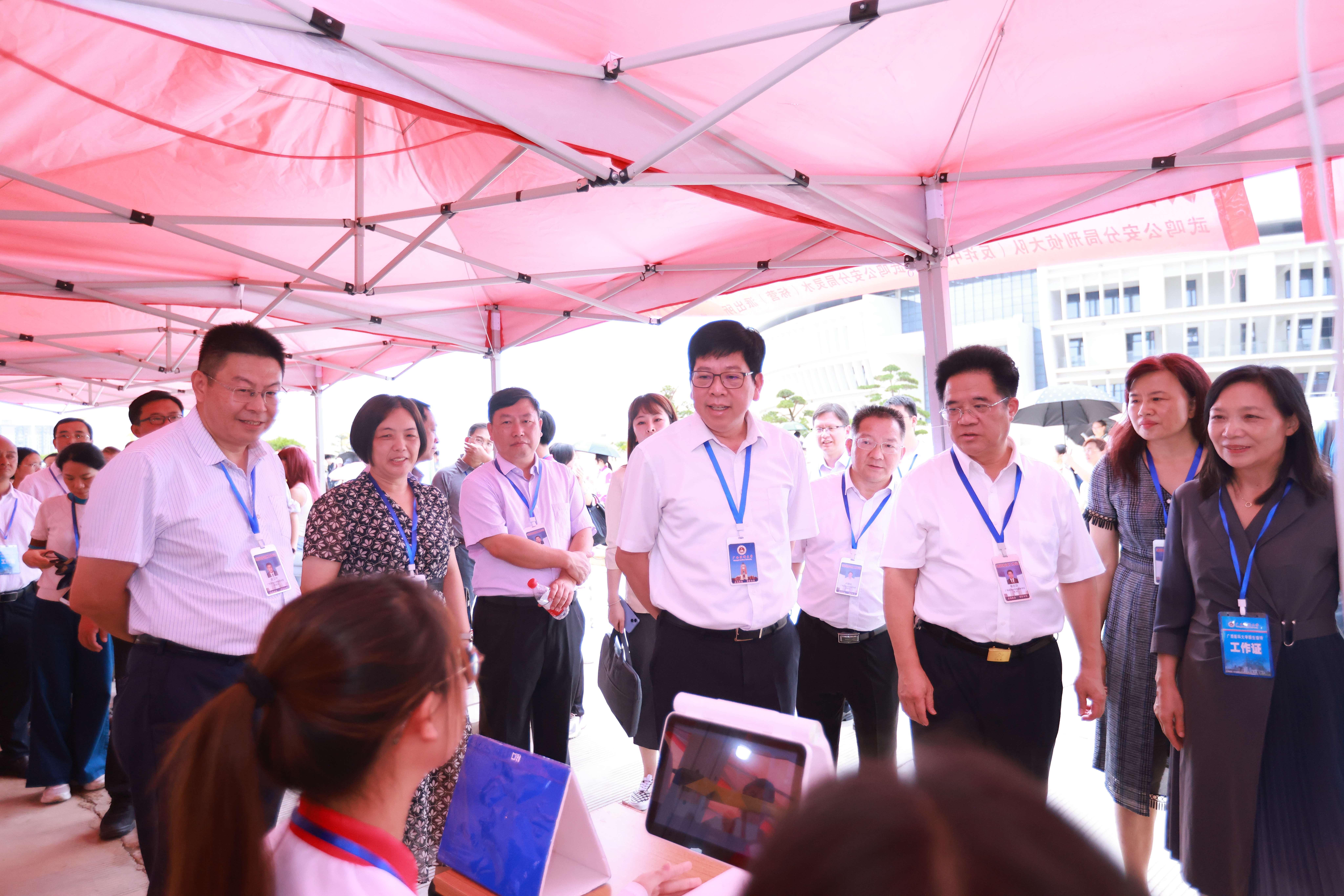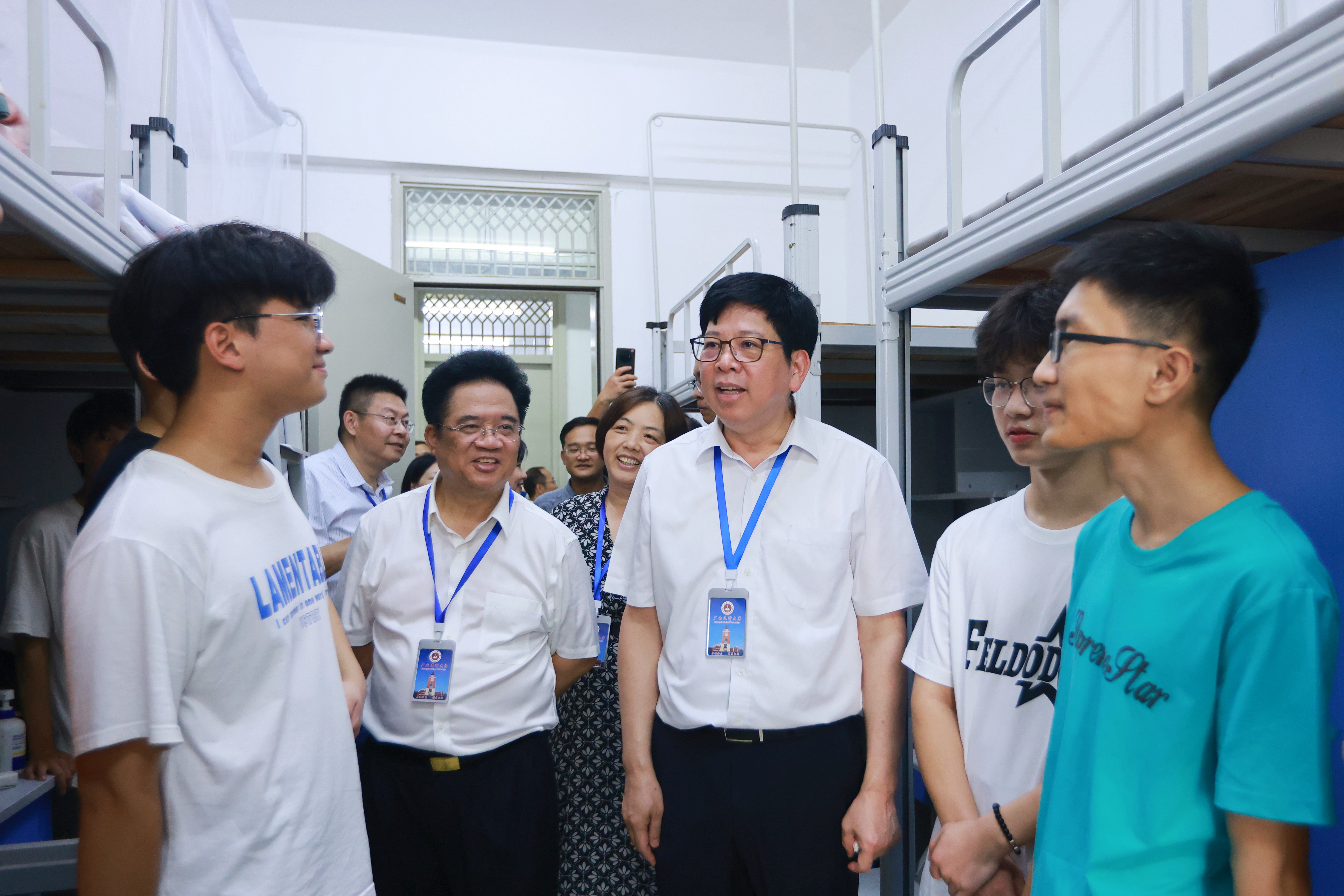 学校党委黄照权书记、曾志羽校长、曾小云副书记、卢德成副校长、陈俊强副校长、唐卫中副校长等校领导前往南宁-武鸣校区迎新现场、学生食堂、学生宿舍等地,了解新生入校报到情况,与新生及随同报到的家长亲切交流,并走访并慰问迎新工作人员和志愿者师生。