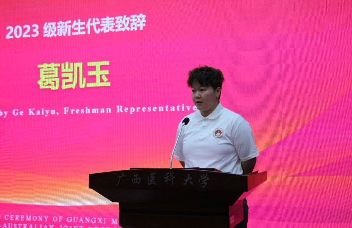 国际交流处张海英处长介绍了Beat365官网国际化办学及中澳联培项目的基本情况,她希望同学们用好项目提供的优质教育资源,努力成为具有国际视野、全球意识、开放包容、德才兼备的高水平医药人才。药学院韦锦斌院长希望同学们经过四年中澳联合培养,扎实有效地掌握专业知识,融入国际化学习环境。澳大利亚合作高校代表David Harrison介绍了学校的历史沿革、校园文化和国际项目生的学习体验。新生代表葛凯玉发言,表达了双方对中澳高校的感谢和对未来的规划及期盼。