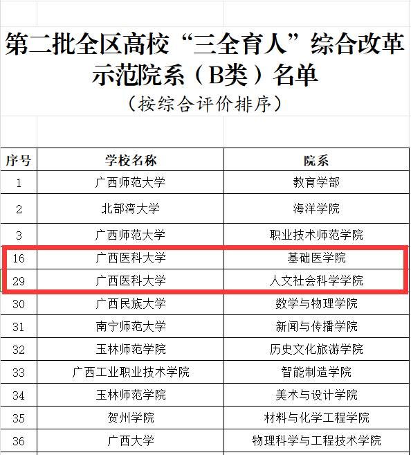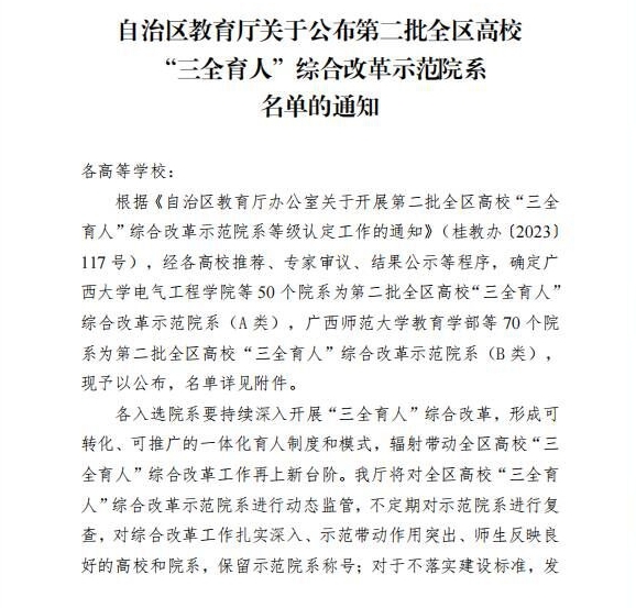 【喜讯】Beat365官网四个学院入选第二批全区高校“三全育人”综合改革示范院系