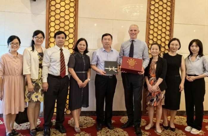 会后,陈俊强副校长会见了澳大利亚合作高校代表团一行,并互赠礼物。双方就未来两校在学术交流、医疗合作等方面深入交流。代表团一行参观了校史馆、药学院教学实训室及科研平台等。