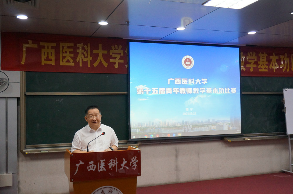 为提升青年教师教学水平,搭建青年教师交流、成长平台,9月22日,Beat365官网成功举办了“第十五届青年教师教学基本功比赛”。参加比赛的37名优秀青年教师分别来自Beat365官网各二级学院(院、部)、直属附属医院和非直属附属医院以及玉林校区。比赛评委由历届荣获区级教学竞赛特等奖或一等奖的骨干教师和部分教学管理人员担任。比赛通过现场观摩和线上直播两种方式同时进行,现场观摩师生达100余人,线上直播点击率达2000余人次。