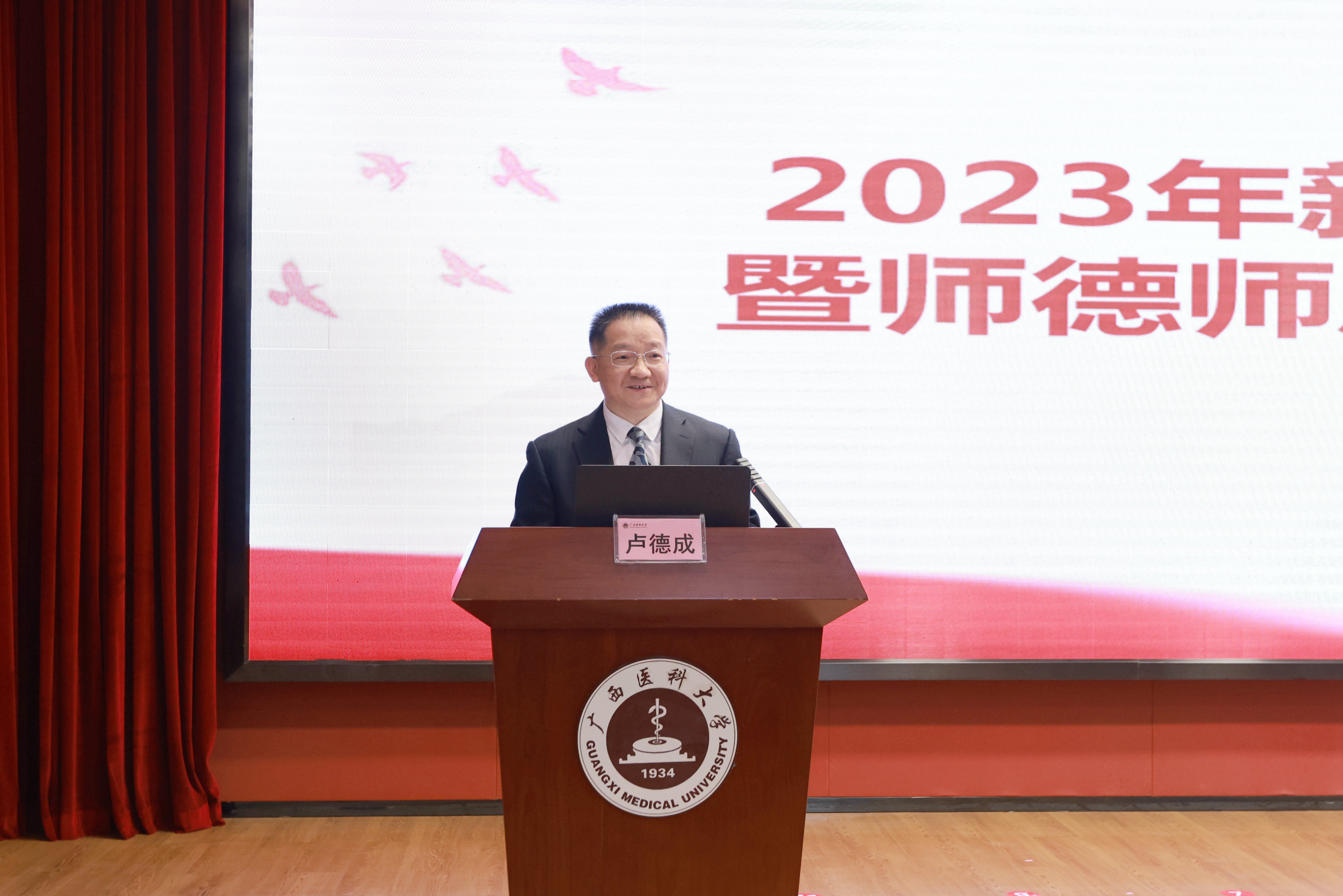 黄照权书记对全体新入职职工的加入表示热烈欢迎和衷心祝贺,并作题为《躬耕教坛育新人 奋楫笃行启新程》的开班讲话,他表示,新职工们戴上了医大的校徽,从此就将肩负起医大人的初心使命,就将教书育人的责任担当放在了心头。
