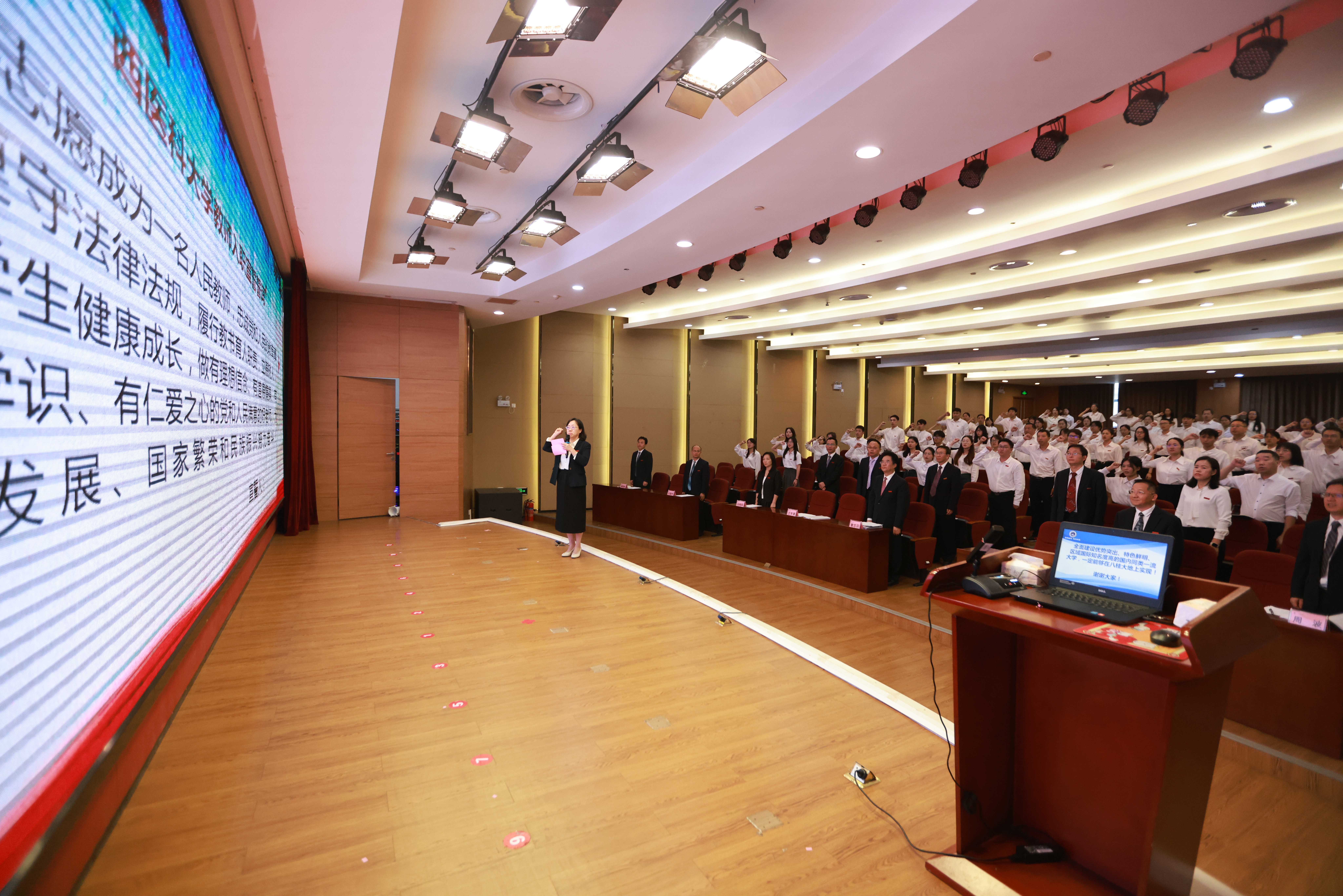 开班仪式上,在学校党委宣传部、教师工作部部长王宇清的领誓下,全体新职工举起右手庄严宣读《Beat365中文官方网站教师入职宣誓誓词》,用铮铮誓言作出庄严承诺,表示将不忘育人初心,践行育人使命。