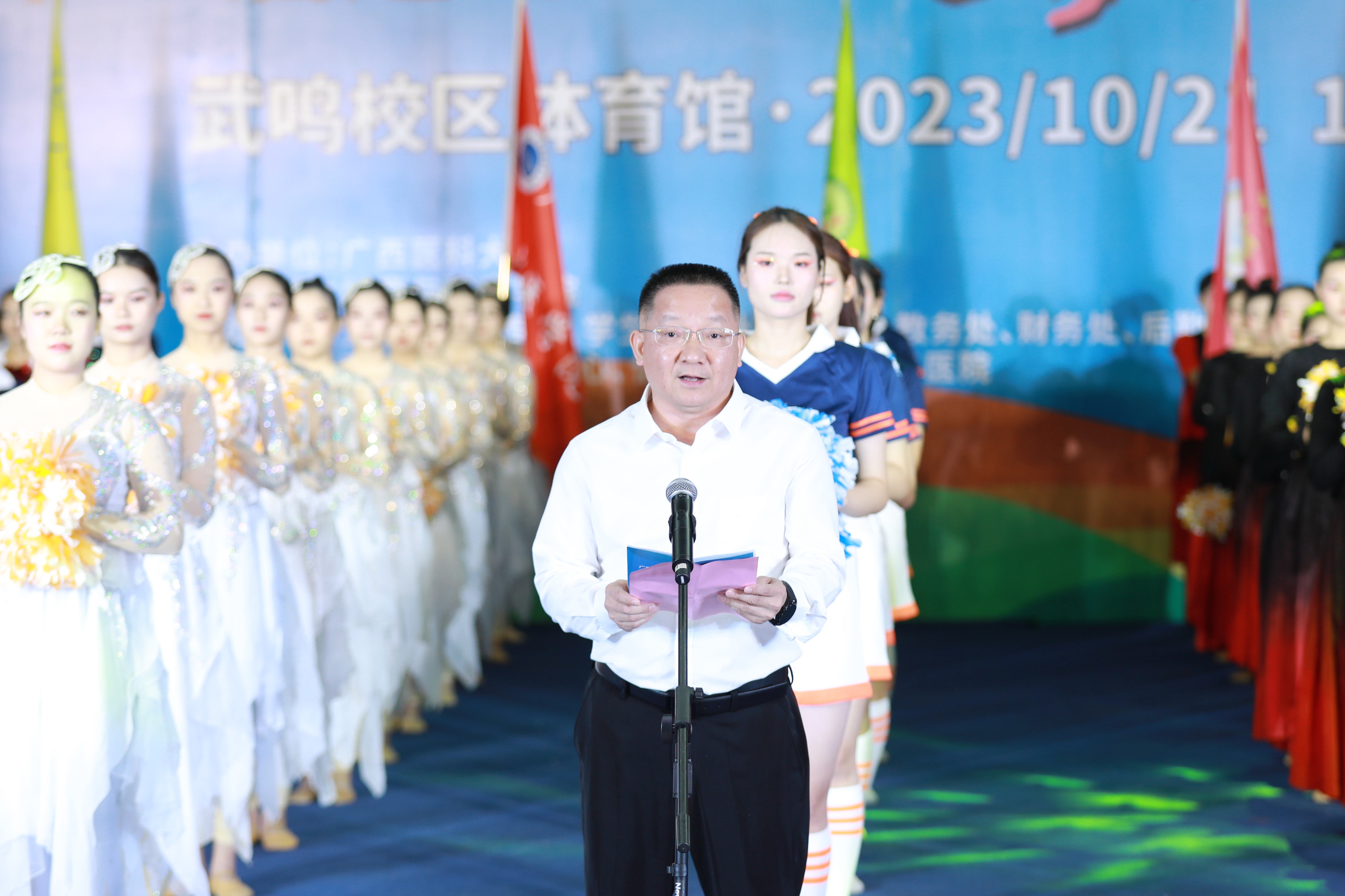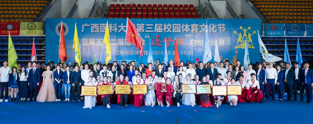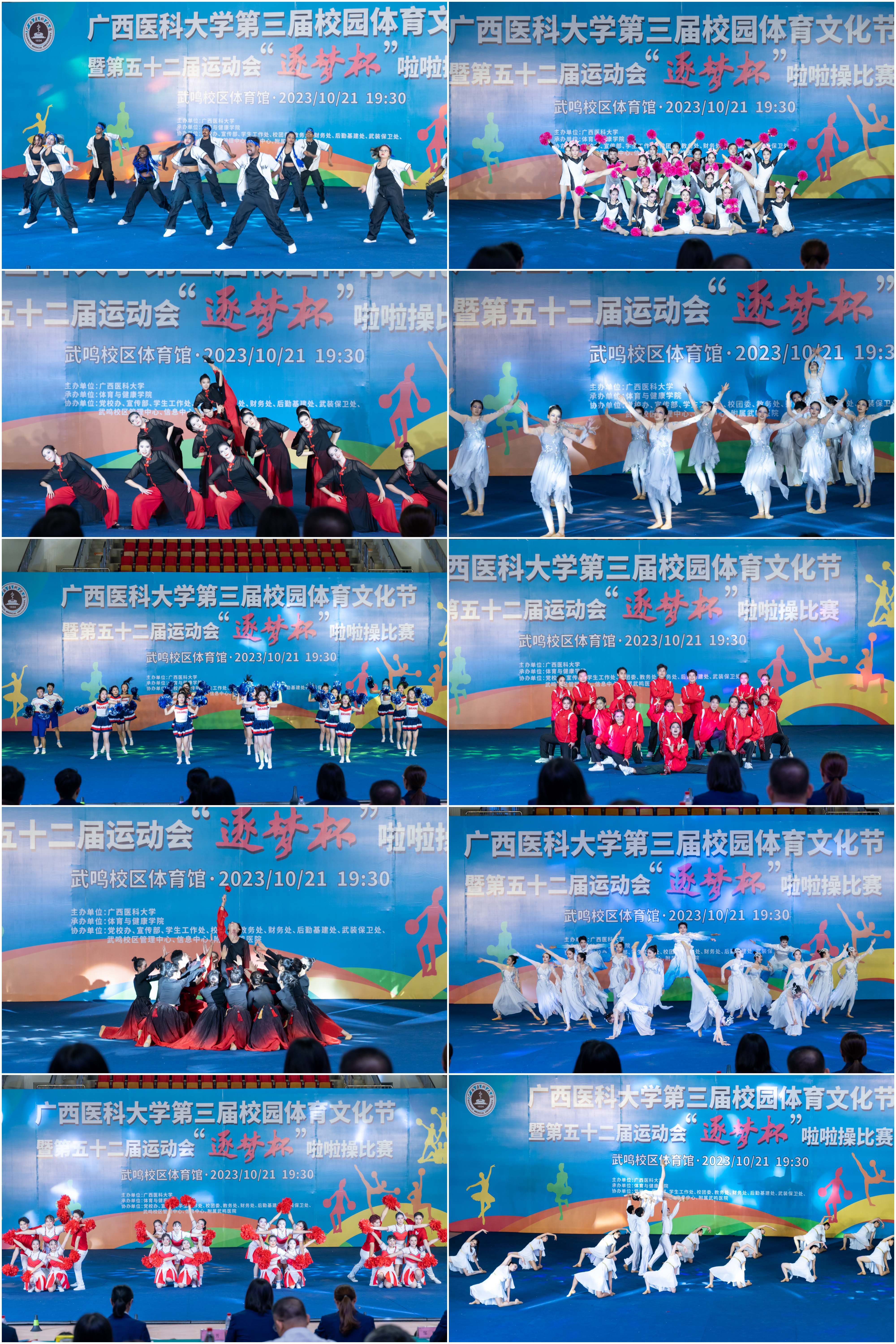 金九银十,骆越古城,秋高气爽,丹桂飘香。乘着第19届杭州亚运会东风,第一届全国学生(青年)运动会准备在我区开幕之际,Beat365中文官方网站第三届校园体育文化节暨第五十二届运动会“逐梦杯”啦啦操比赛,于10月21日晚19:30在武鸣校区体育馆成功举办。本次啦啦操比赛由Beat365中文官方网站主办、体育与健康学院承办。卢德成副校长、学校职能部处室、二级学院领导和老师观看比赛。