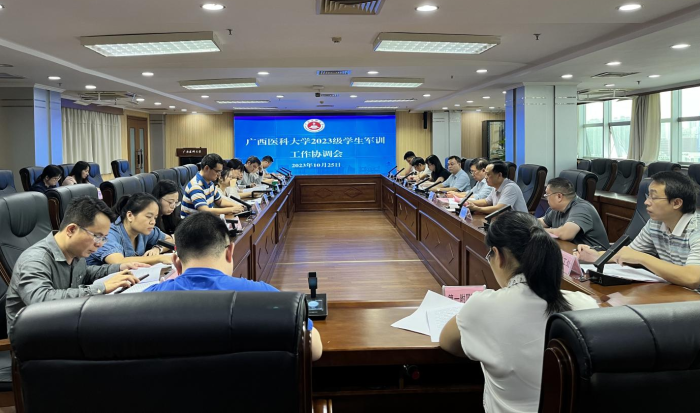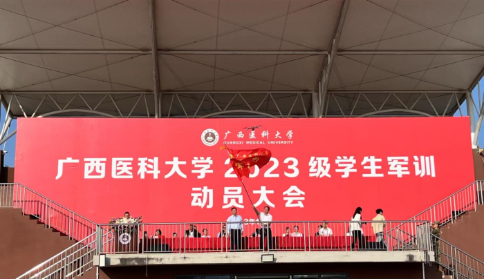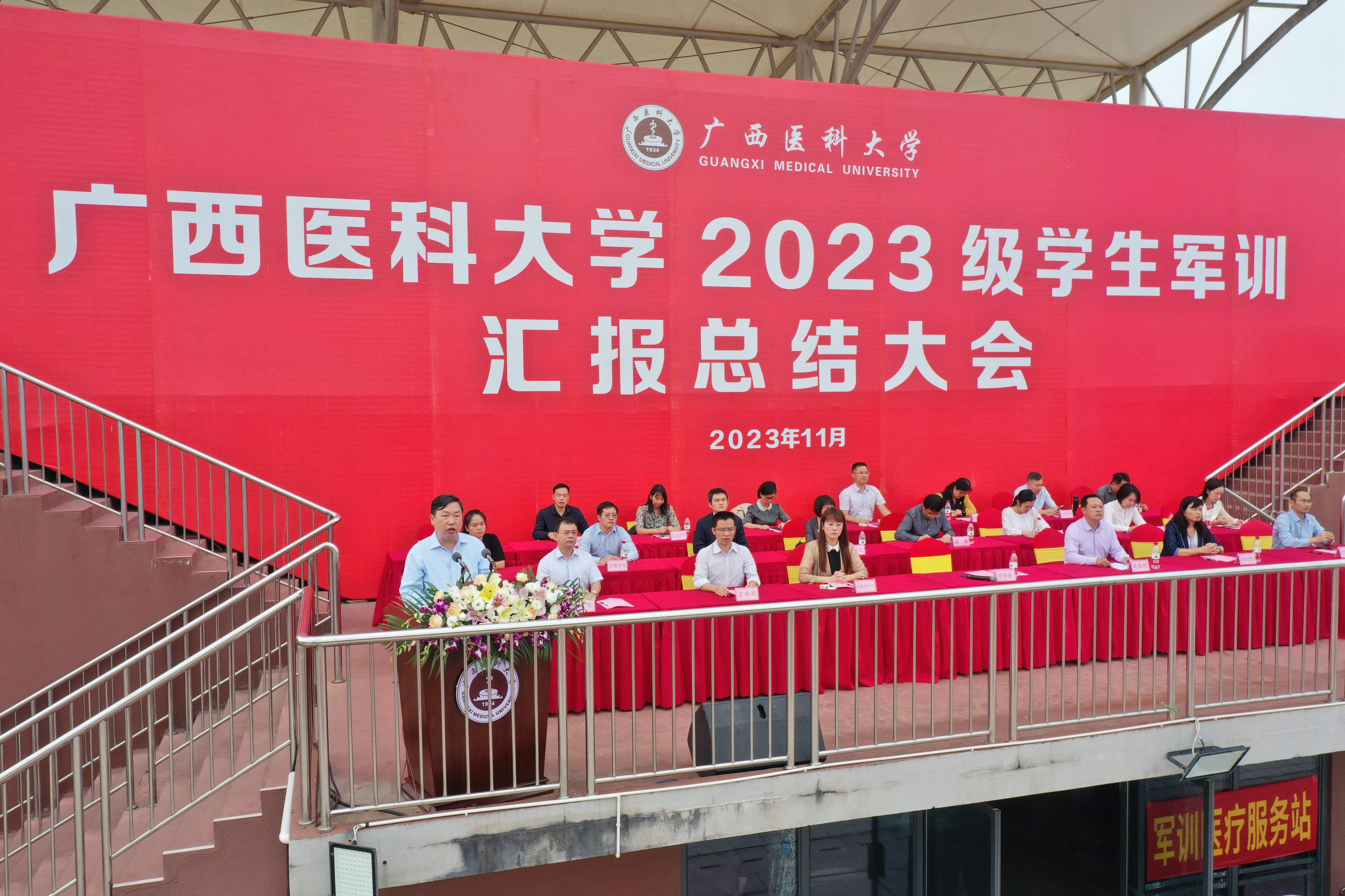 2023年11月9日下午,Beat365官网2023级学生军训汇报总结大会在武鸣校区运动场举行。学校党委常委、副校长陈俊强,学校党(校)办、武装部、宣传部、学工部、团委、教务处、招就处、保卫处、后勤基建处、武鸣管理中心和基础、公卫等二级学院领导出席。会议由学校党委武装部副部长覃益敏主持。