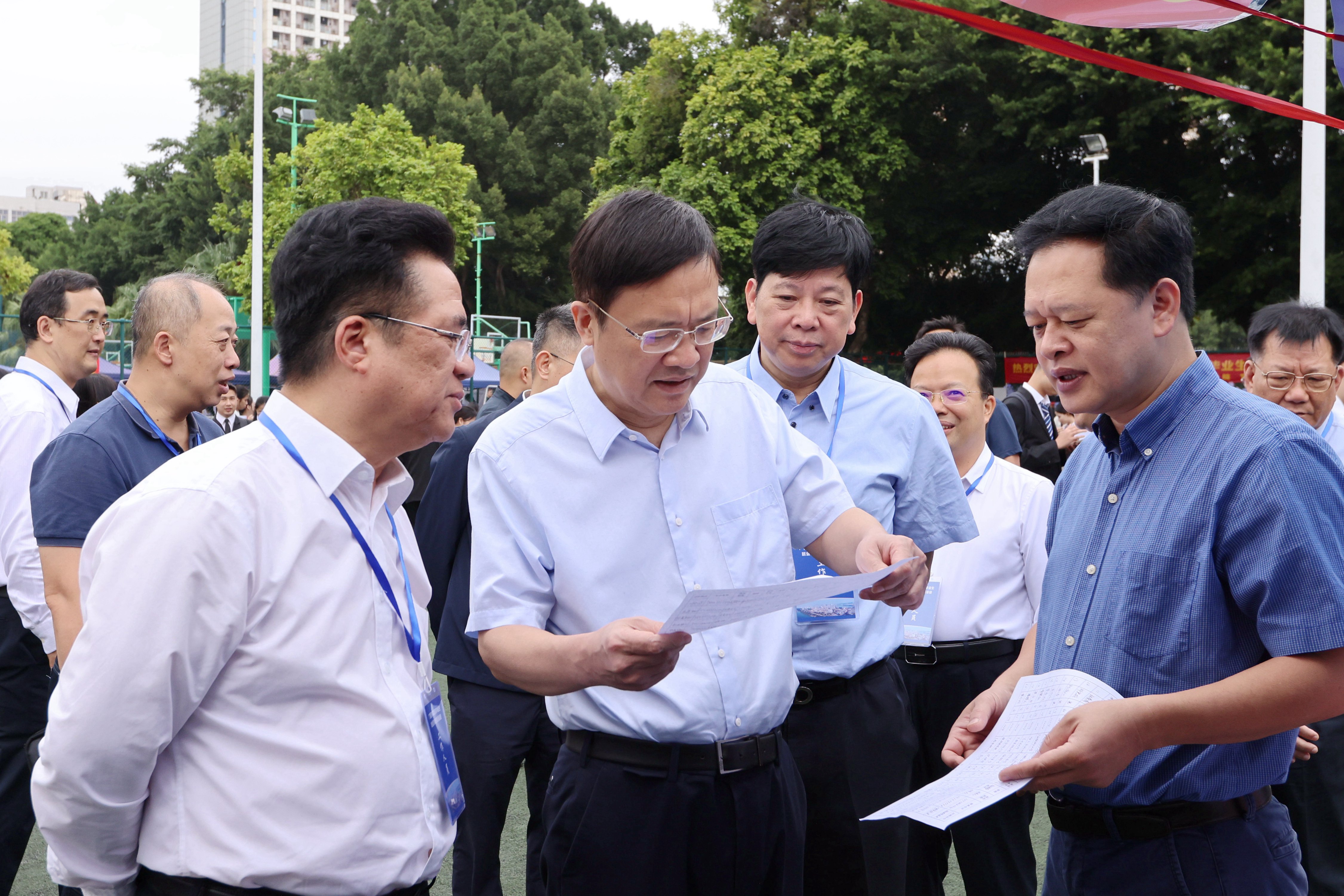 自治区教育厅党组书记、厅长刘友谊,Beat365中文官方网站党委书记黄照权,党委副书记、校长曾志羽等领导莅临现场与用人单位交流,并指导毕业生求职就业。