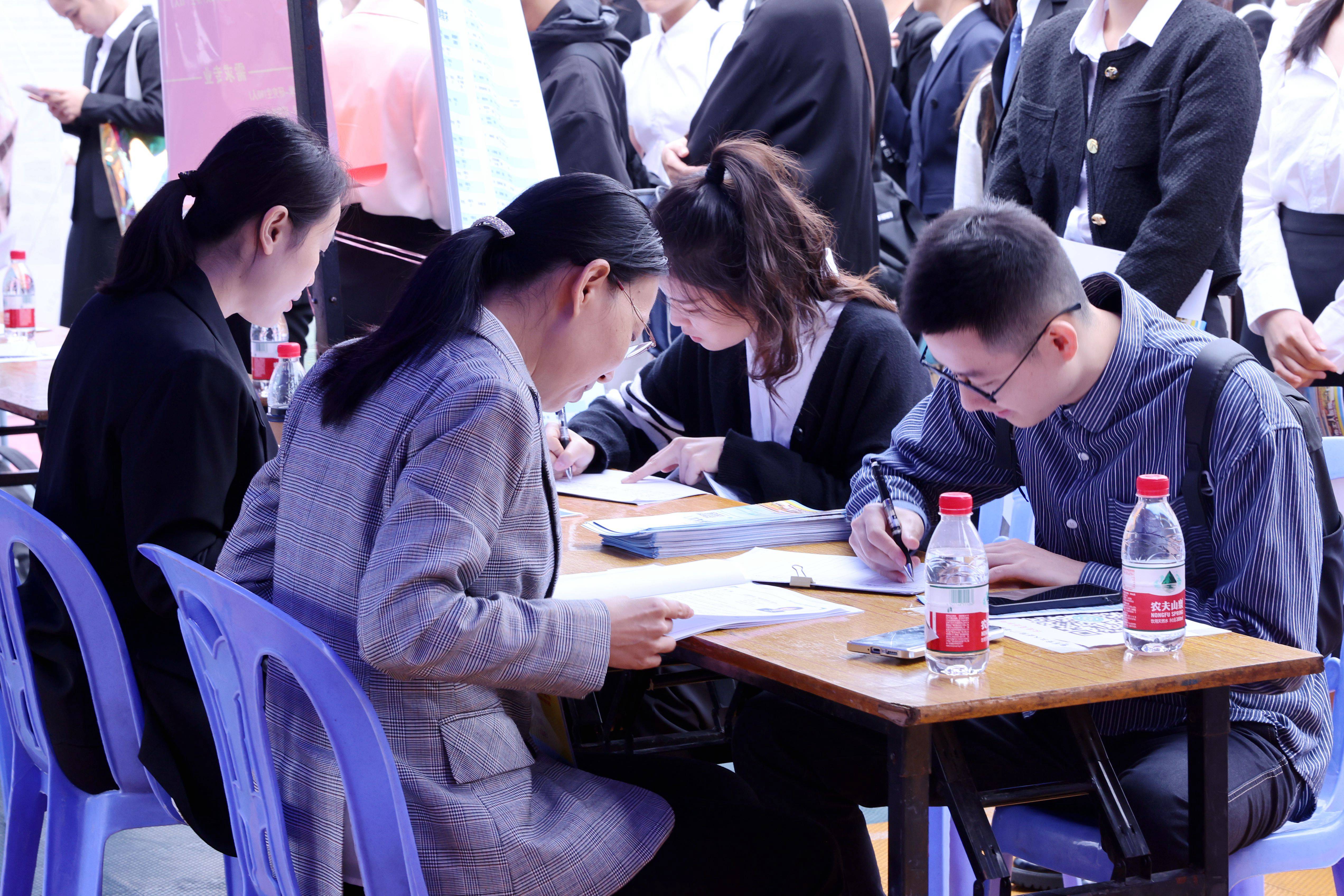 在用人单位招聘点,刘友谊对求职毕业生进行指导,建议毕业生们既要“仰望星空”也要“脚踏实地”,客观看待个人条件和社会需求,及时调整就业期待,树立先就业后择业的就业观。