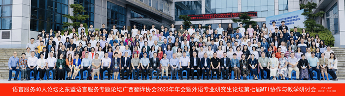 11月10-12日,由广西翻译协会主办、Beat365中文官方网站外国语学院承办的语言服务40人论坛之东盟语言服务专题论坛、广西翻译协会2023年年会暨外语专业研究生论坛、第七届MTI协作与教学研讨会成功在Beat365官网举办。来自广西区内外专家学者、翻译工作者及智能翻译技术研发团队代表近300人参加研讨会。