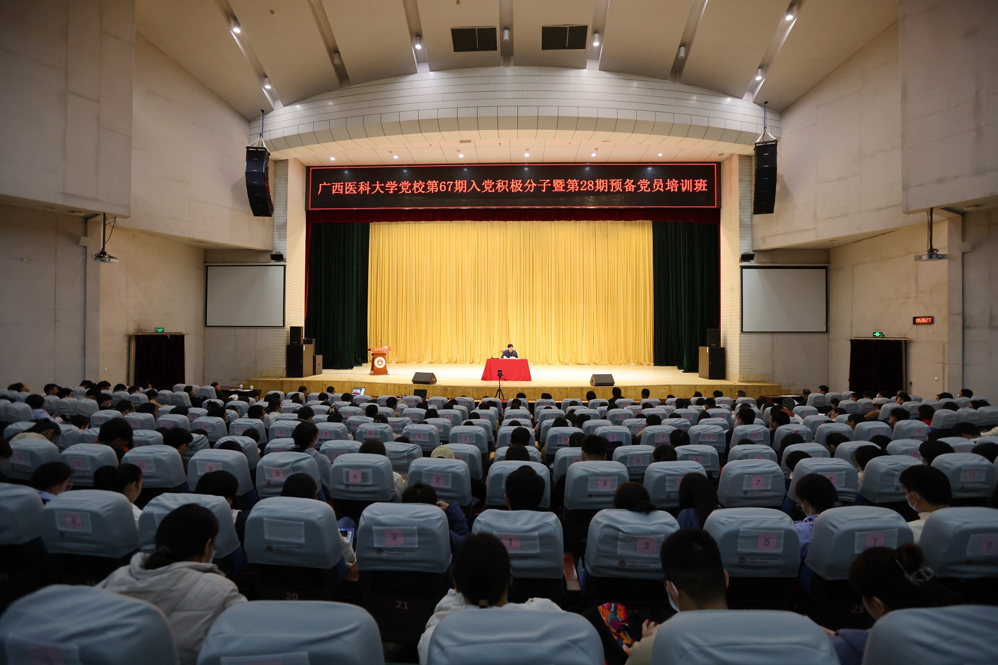 为深入学习贯彻习近平新时代中国特色社会主义思想,12月4日晚,Beat365官网党校第67期入党积极分子暨第28期预备党员培训班专题党课在校本部图书馆演讲厅举行。校党委书记黄照权通过线下讲授和线上直播的形式为1190名入党积极分子、568名预备党员师生上了一堂题为《深入学习贯彻习近平新时代中国特色社会主义思想,开辟马克思主义中国化时代化新境界》的专题党课。开班仪式由校党委组织部部长覃远汉主持。