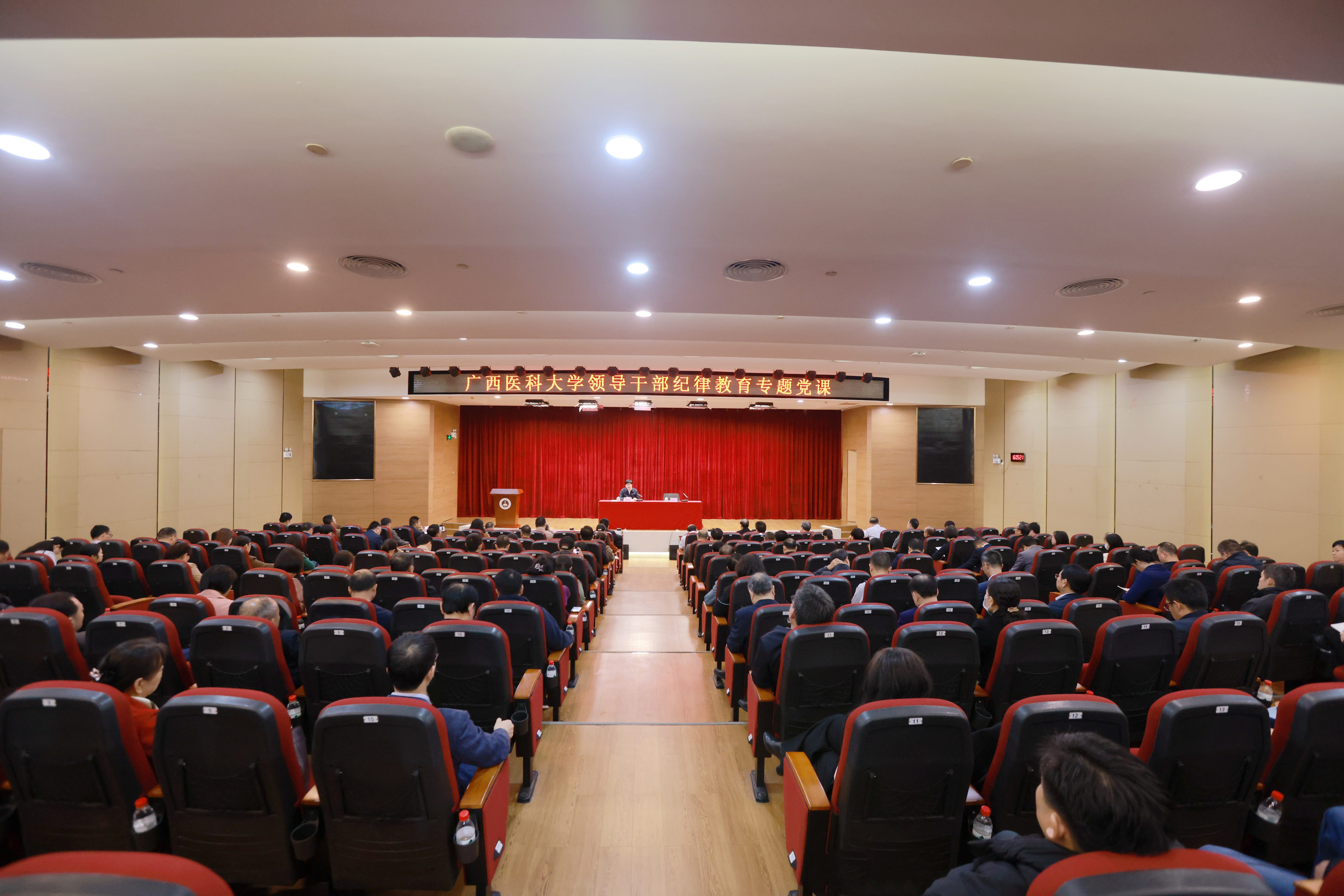 根据自治区纪委机关、教育工委《关于在全区高校开展“加强纪律教育,建设清廉学校”系列活动的方案》部署,按照全区高校党员领导干部警示教育大会精神要求,为进一步增强学校领导干部政治意识、规矩意识、纪律意识、法律意识和底线意识,12月6日下午,黄照权书记走上讲台,为Beat365中文官方网站领导干部讲授纪律教育专题党课。