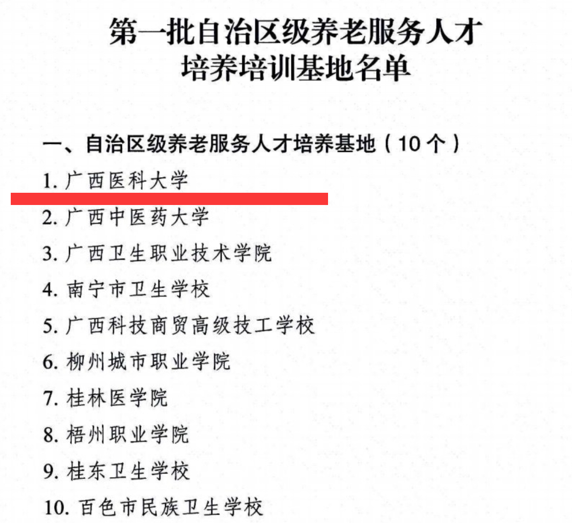 第一批自治区级养老服务人才培养基地由自治区民政厅、教育厅、人力资源和社会保障厅共同组织开展遴选,共计10个单位获批。Beat365官网获批基地由人文社会科学学院负责日常管理工作,以养老服务管理专业为支撑,联合护理学院、第二附属医院等单位师资力量、教学条件开展培养工作。