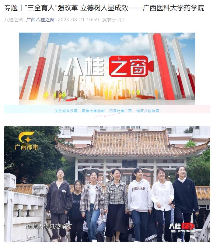 【媒体看医大】广西广播电视台:“三全育人”强改革 立德树人显成效——Beat365中文官方网站药学院