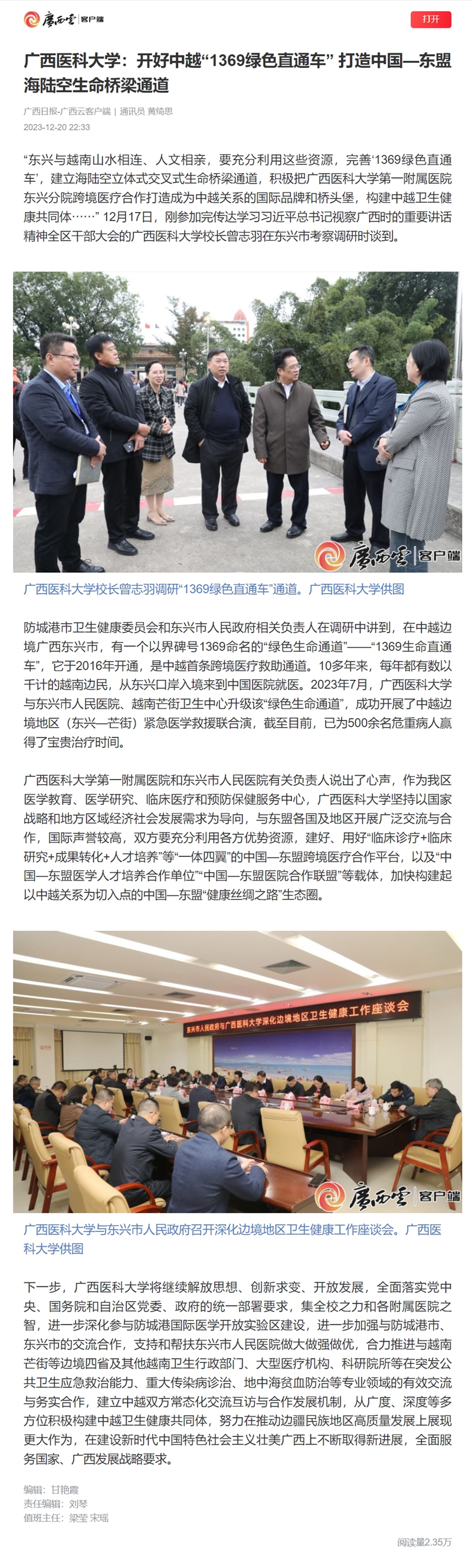 【媒体看医大】广西日报广西云客户端:Beat365中文官方网站:开好中越“1369绿色直通车” 打造中国—东盟海陆空生命桥梁通道